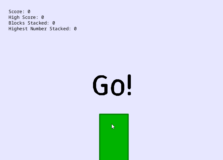 - Blocks will move across the screen, and it's your job to stop them and put them on the "stack" -- your tower of stopped blocks in the middle.